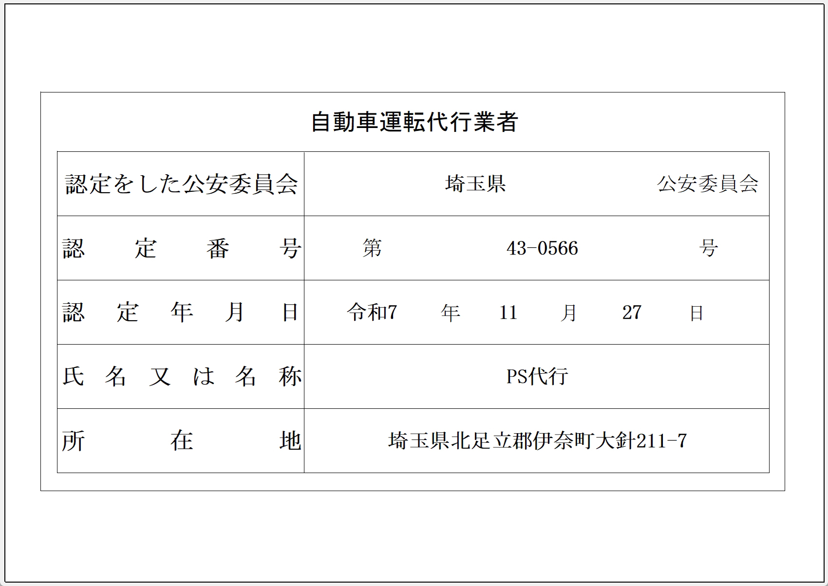埼玉県公安委員会認定 第43-0566号
